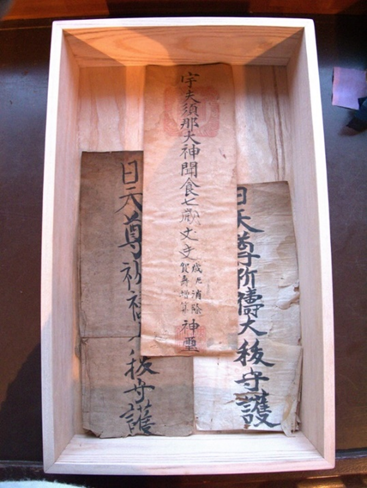 それから40~50年経った頃、ずっと神棚に上げられていた木箱がふと目に留まり、開けてみると三枚のお札と共に眠っていたオシンメイサマを見つけた。