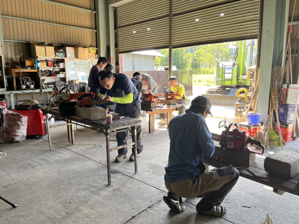 なぜこれほどチェーンソーの手入れにこだわるのか。それは、安全で正確な伐倒作業のためには、素早く切れるチェーンソーが必要だ、という親方の経験からだ。木を伐採するという仕事は、決して安易な仕事とは言えないし、少し何かを間違えれば、重大事故につながる。だからこそ、危険な作業時間をなるべく短くするために、道具を常に良いコンディションに保っておくことが重要なのだ。そして研いだ後の仕上がりは、自分の指で刃を触ってみて、研ぎ具合を確認するように、というのが親方のこだわりだ。ちょっと力を入れすぎたら指先を切ってしまうわけで、刃の仕上がりは素手で触って確認すること、などとはもちろんどんな教本にも書いていない。