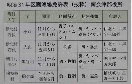 河沼郡、耶麻郡に鮭の漁場の記録あり。メールでは南会津郡の一部を抜粋。