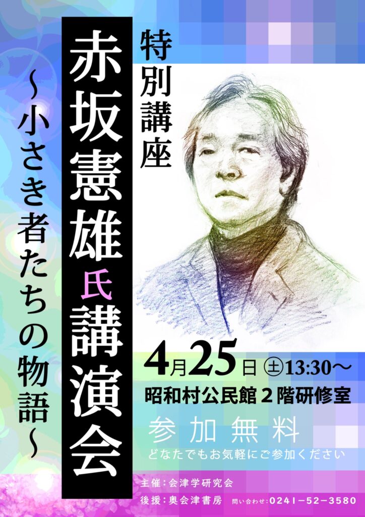 ・日時:4月25日(土)13:30~ ・会場:昭和村公民館2階研修室 ・主催:会津学研究会 後援:奥会津書房 参加無料。どなたでもお気軽にご参加ください! 問い合わせ:0241-52-3580(奥会津書房)